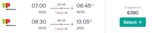 Cheap flights from Amsterdam, Netherlands to Maputo, Mozambique for only €390 roundtrip with TAP Air Portugal.
