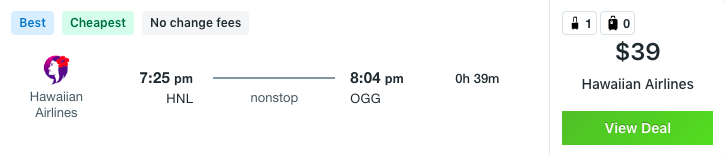Fly from Honolulu to Maui from $39Fly from Honolulu to Kona from $39Fly from Maui to Lihue from $39