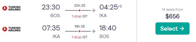 Cheap flights from Boston to Tehran, Iran for only $656 roundtrip with Turkish Airlines.