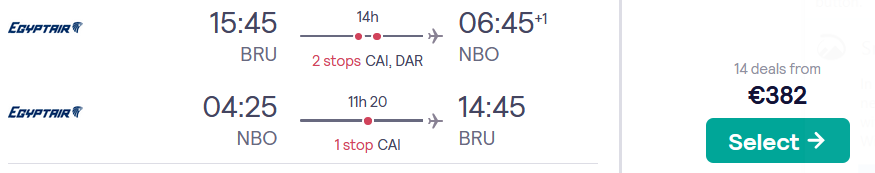 Cheap flights from Brussels, Belgium to Nairobi, Kenya for only €382 roundtrip.