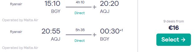 Non-stop flights from Milan, Italy to Aqaba, Jordan for only €16 roundtrip.