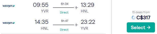 Cheap flights from Vancouver, Canada to Honolulu, Hawaii for only $317 CAD roundtrip.