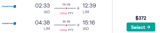 Washington DC to Lima, Peru for only $372 roundtrip (Jan-Jun dates)